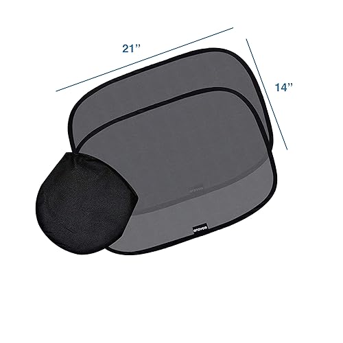The Secret To Keeping You Cool and Comfy in the CarThe Best Car Sun Shades to Protect Your Precious Passengers. - Fits most car windows. - Easily Installs without falling off. - Lightweight but strong and durable with a sturdy wire all around. - Blocks over 97% of Harmful Rays while maintaining driver visibility. - Reposition the sunshades according to your need without any suction cups or adhesives. - Easy to twist, fold and store in the storage pouch included as a Free Bonus in the package. What is included in your purchase: - 4 Comfy Ride Sun Shades - A Premium Quality Black Storage Pouch - A Bonus Free - EBook on Safety Tips in the Heat Lifetime No-Hassle, No-Question-Asked, Free Replacement, Money Back Guarantee! Order your Side Car Window shades today and experience the Enovoe difference!