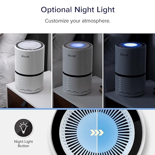 LEVOIT Air Purifiers for Home, High Efficient Filter for Smoke, Dust and Pollen in Bedroom, Filtration System Odor Eliminators for Office with Optional Night Light, LV-H132 1 Pack, White