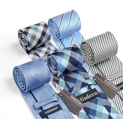 HISDERN Mens Ties Set 5PCS Collection Tie with Pocket Sqaure Formal Business Necktie Present Box Neckties Set for Men