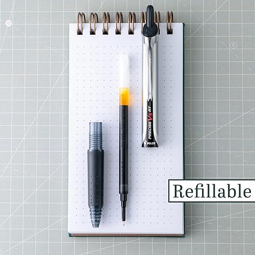 Pilot, Precise V5 RT Refillable & Retractable Rolling Ball Pens, Extra Fine Point 0.5 mm, Black, Pack of 6