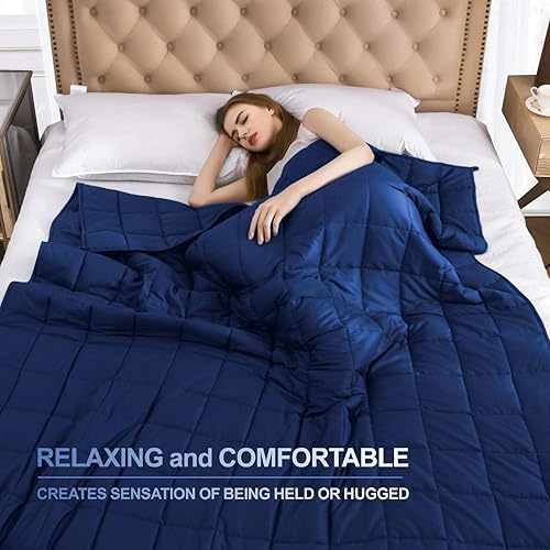 MAPLE DOWN Weighted Blanket for Adult 20 lbs Heavy Blanket, King Size, 7-Layer Cooling Weighted Blanket, 100% Cotton with Glass Beads, Body Weight Between 180lbs - 210 lbs(Navy Blue)