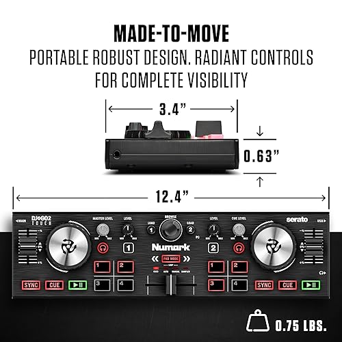 Numark DJ2GO2 Touch – Compact 2 Deck USB DJ Controller For Serato DJ with a Mixer / Crossfader, Audio Interface and Touch Capacitive Jog Wheels,Black