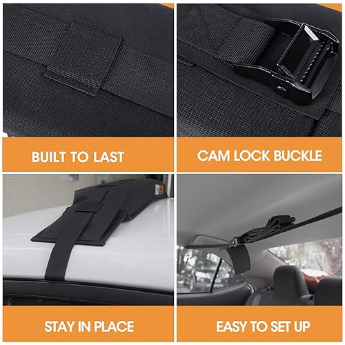 Take Your Board and Go Further HEYTRIP Soft Roof Rack offers a solution for carrying your kayak, canoe, surfboard, or SUP and other sports equipment on cars not fitted with a roof rack or roof bars. Just feed the straps down through the inside of your vehicle and tighten. With this handy option, why trouble yourself installing a complicated and expensive fixed roof rack? With 4 ultra-long straps, it holds up to 1-3 shortboards/ 1-2 longboards or kayaks depending on size. Built-in non-slip mat to prevent scratching on the roof while reducing wind noise. Foldable design, it is easy to store with its portability and lightweight when not in use. ✅MORE SAFETY: We have provided extra straps for more security. All you need is included: 2 x Soft Roof Rack With Strap 2 x 15FT Heavy Duty Tie Down Strap 2 x 15FT Bow And Stern Tie Down Rope 2 x Quick Loop Strap 1 x Storage Bag 1 x User Manual Product Features: * Designed for most cars (no side rails or gutters required). * Ideal for transporting Kayak/Canoe/Surfboard/Paddle Board/SUP/Snowboard/Skis and other loads. * Superior quality, vehicle scratching or scuffing can be avoided, lightweight and anti-vibration. * Flexible & secure, extra straps and buckle providing more security. * Easy to attach & remove, no tool required.