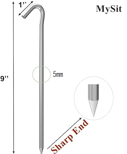 MySit 9" Tent Stakes Inflatable Stake 60 Pack, Heavy Duty Galvanized Metal Tent Pegs Garden Staples Ground Pins Camping Fence Hooks for Inflatables, Outdoor Garden Christmas Decorations, Trap