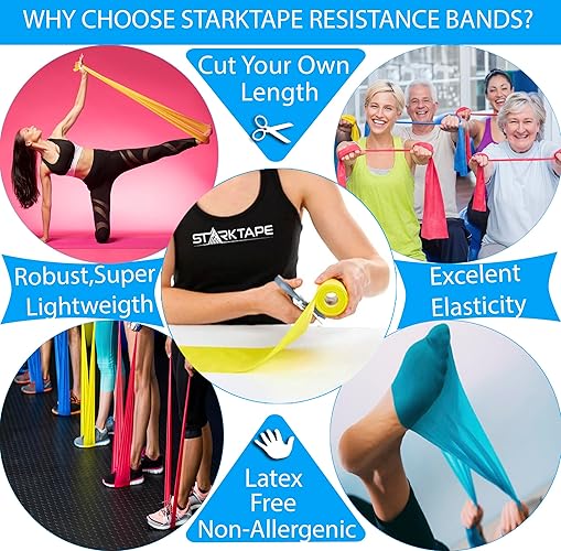 Starktape Resistance Bands Professional 8,16, 25, 50 Yards Bulk Rolls. Latex-Free Elastic Physical Therapy Band. No Scent, No Powder - Perfect for Home Exercise, Yoga, Pilates, Gym, Rehab, Workout