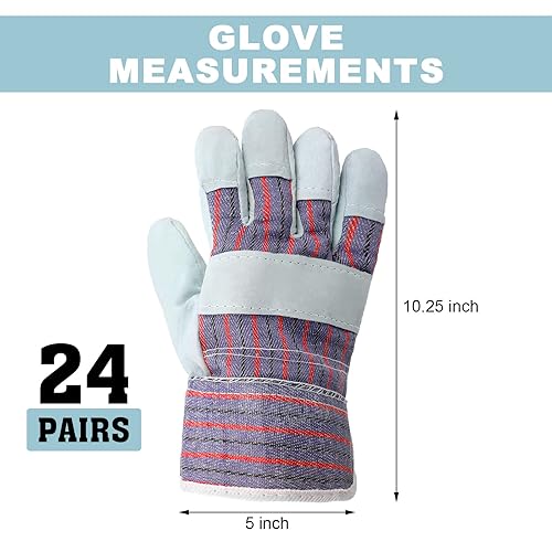 Jiuguva 24 Pairs of Work Gloves Cotton Leather Gloves Safety Cuff Gardening Gloves with Heavy Duty Reinforced Palms Gardening for Men Women, Red and Blue