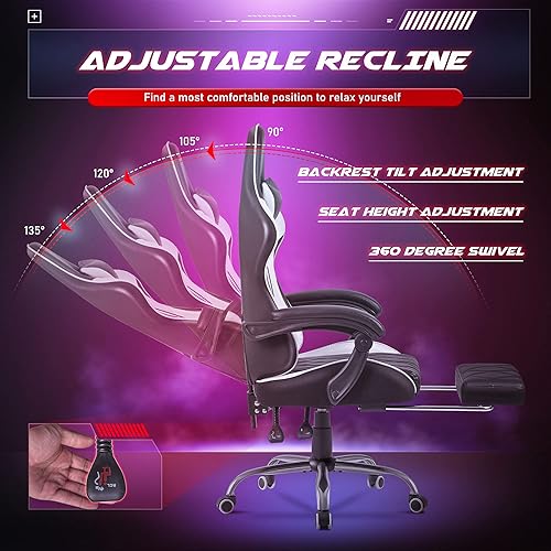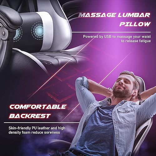 Homall Gaming Chair, Computer Chair with Footrest and Massage Lumbar Support, Ergonomic High Back Video Game Chair with Swivel Seat and Headrest (White)