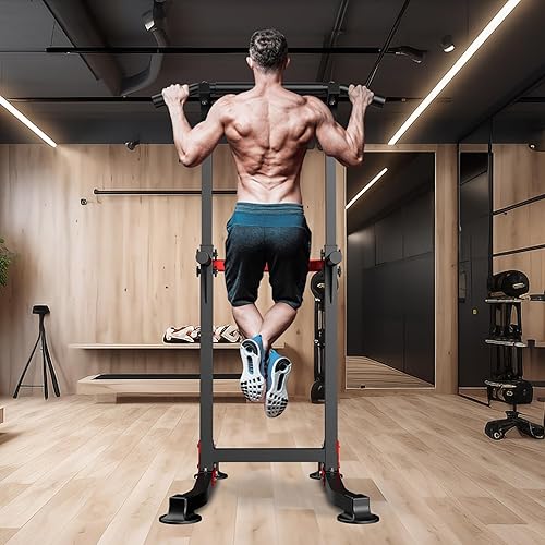 Pull Up Bar Dip Bar Power Tower Workout Dip Station Height Adjustable Free Standing Chin Up Bar Home Gym Equipment 330LBS Weight Capacity