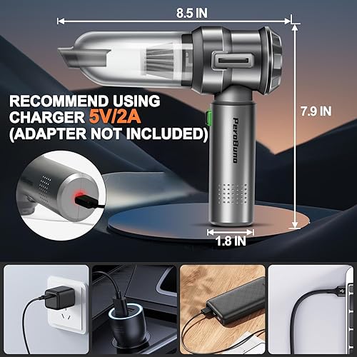 PeroBuno Car Vacuum Cleaner High Power- 18KPa Powerful- 35 Mins Runtime- 3 Gear- 2 in 1 Compressed Air Duster- Cordless Portable Mini Handheld Vacuum with Brushless Motor and Type C