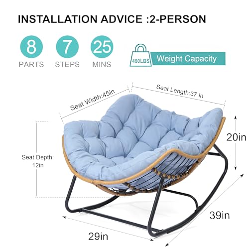 SWITTE Outdoor Rocking Chair, Patio Egg Rocking Chair, Indoor Papasan Chair, Rattan Wicker Lounge Chair, Modern Royal Chair for Bedroom, Living Room, Porch, Garden, Lawn-Blue