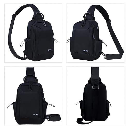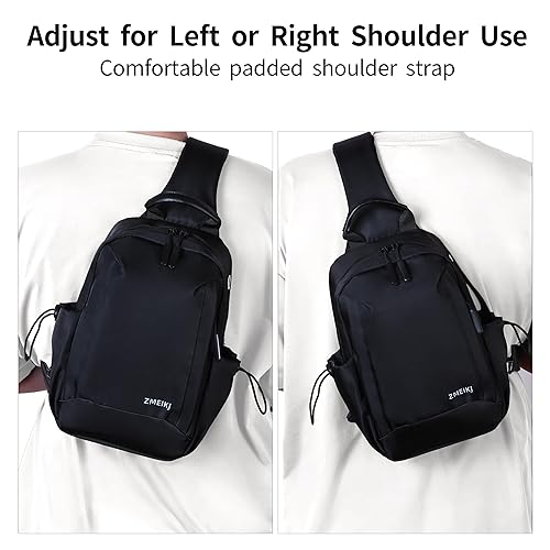 ZMEIKJ Black crossbody bag mens sling bags crossbody is designed with a compact size of 11.8*7*3.5 inch, Satchel for men weight of only 0.4KG, While still offering a large capacity to carry all your essentials. With ipad sling bag main pocket capable of holding a 9.7-inch iPad books sunglasses mobile power cosmetics tissues keys and more. Small zippered pocket for phones wallet and outdoor travel sundries. The adjustable side pocket can hold a 2.4-inch (diameter) umbrella bottle When you are out and about or small crossbody bag travel bags for men essentials, simply connect your phone to the charging cable, then plug the cable into the portable power supply you carry in your bag through the hidden headphone hole to easily charge your phone, which is both convenient and practical Tactical sling bag for men sling backpack bag men's bag is waterproof dirt-resistant lighter durable scratch-proof and easy to clean. mens messenger bag crossbody camera bag crossbody is very comfortable when worn on your back or chest. Whether you are traveling daypacking running hiking biking or riding, If the travel daypack gets dirty, simply wipe it down with a damp towel to keep it clean, man bags crossbody breathable mesh padded shoulder straps provide you with all-day comfort, mens travel bag perfect for hiking bag and everyday carry, Cross body bag for women cross bag for men has 2 D-rings on the bottom, mens sling backpack strap can be connected to either side for your preference, making convenient to wear on your left or right shoulder, The length of the strap can be adjusted for a comfortable fit. Fanny pack crossbody has breathable mesh padding, making men crossbody bags comfortable to wear when hiking travel essentials and so on Sling pack bag for women & men is perfect for various occasions such as gym fitness camping sports weekends day backpack trips vacation short trips office walking shopping business everyday bag using.Sling crossbody bag excellent holiday gifts for men, cross body bag mens which is also good looking in the appreance, Mens bags black crossbody purse provides added security by wearing it across the chest, keeping your hands free. If you have any problems, please feel free to contact us, We will reply and solve your problem promptly, please purchase with confidence