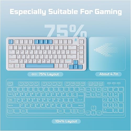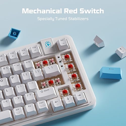 ROYALAXE 75% Mechanical Gaming Keyboard, LED Backlit Wired Mechanical Keyboard with 3 Stage Adjustable Feet, Linear Red Switch with Sound Absorbing Foams, Compatible with Win/MAC/iOS, White Keyboard