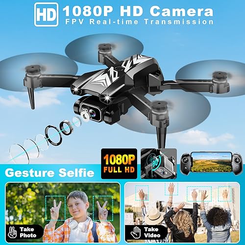 Mini Drone with Camera for Kids Adults-1080P FPV Camera Foldable Drone with Stable Altitude Hold, Gestures Selfie, Waypoint Fly, Auto-Follow, 3D Flip, One Key Start, 3 Speeds, 2 Batteries