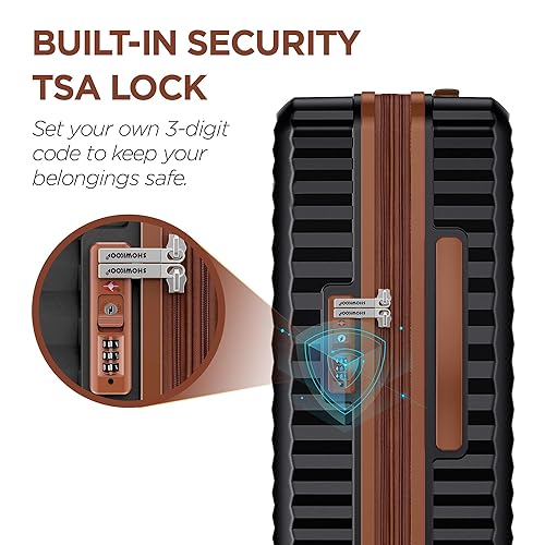 SHOWKOO Luggage Sets 3 Piece Hardside Expandable Suitcase with Double Spinner Wheels Tsa Lock, (Black, 5 piece set)