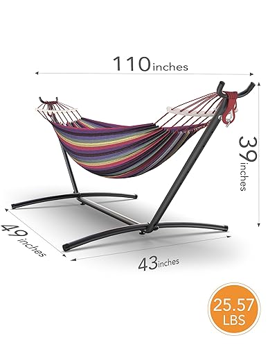EveryFun Double Hammock with Heavy-Duty Steel Stand,Portable,Easy Assembly,600lbs Weight Capacity,Suit for Indoor,Yard,Camping,or Outdoor-Rainbow