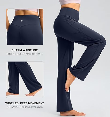 SANTINY Yoga Pants Women 30.5"/32" High Waist Stretch Comfy Lounge Dress Athletic Wide Leg Pants
