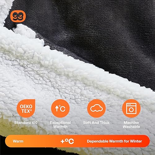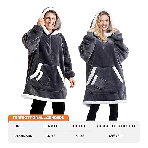 Giggling Getup Wearable Blanket Hoodie for Women Men - Oversized Flannel Sherpa Fleece Hooded Blanket - Soft Cozy Warm Blanket Sweatshirt Gifts with Giant Pocket and Sleeves for Adult Dark Gray