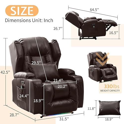 Leather Lazy Boy Recliner Chair for Adults, Modern Recliner Chair with Cup Holder, Comfy Power RV Theater Seating Recliner Chairs Sofa with LED Lights & Heat & Massage Vibration