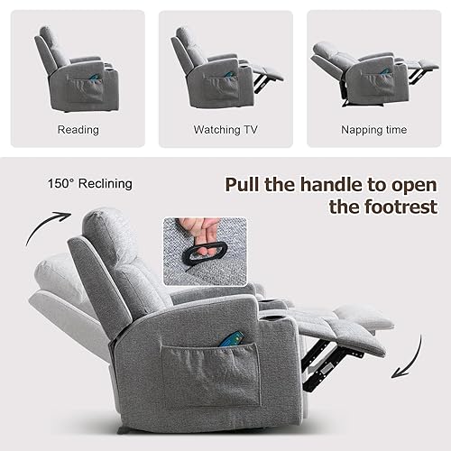 Rocker Recliner Chair with assage and Heat Ergonomic Rocking Lounge Chair for Living Room Comfy Manual Recliner